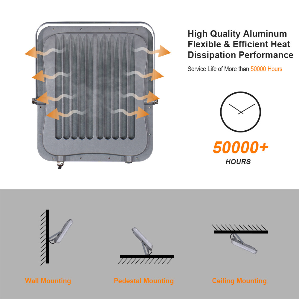 [দক্ষ তাপ অপচয়, IP65 জলরোধী] LED আউটডোর ফ্লাডলাইট বাতাসের যোগাযোগের ক্ষেত্রফল বাড়াতে স্ট্রিমলাইন হিট সিঙ্ক ডিজাইন গ্রহণ করে, কার্যকরভাবে তাপ অপচয়কে ত্বরান্বিত করে এবং আউটডোর LED ফ্লাডলাইটের পরিষেবা জীবনকে দীর্ঘায়িত করে। নিরাপত্তা আলো পালিশ করা হয় এবং ইলেক্ট্রোস্ট্যাটিক্যালি চিকিত্সা করা হয়, সহজে মরিচা ধরে না এবং বিবর্ণ হয় না। ডাই-কাস্টিং অ্যালুমিনিয়াম ল্যাম্প বডি গ্রহণ করুন, IP65 জলরোধী ফাংশন আছে, দীর্ঘ পরিষেবা জীবন, ল্যাম্প পরিবর্তনের সংখ্যা হ্রাস করে, এইভাবে ম্যানুয়াল অপারেশন হ্রাস করে।